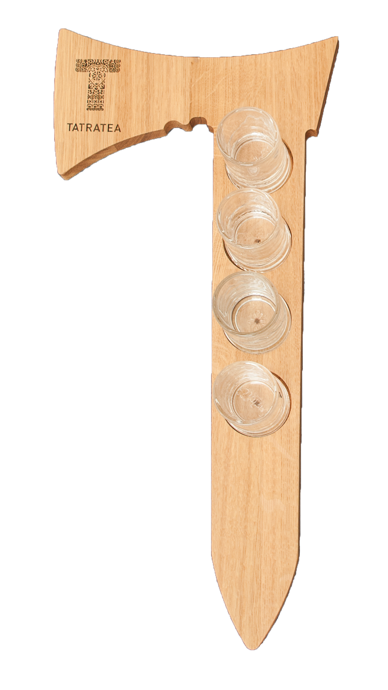 Spojenie tradície a zážitku v jednom produkte. Drevená valaška s logom TATRATEA je originálny doplnok, ktorý zaujme na prvý pohľad a ešte viac pri používaní. Precízne spracované drevo dopĺňa vyfrézovaný otvor na 4 shot poháriky, vďaka čomu sa z nej stáva ideálny spoločník na oslavy, stretnutia s priateľmi či ako netradičný darček.